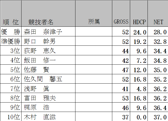 11月ハーフコンペ結果報告(2025.11.17)参加者12名